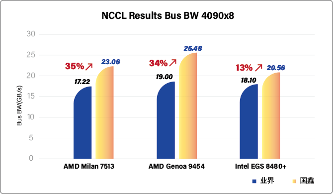 惊爆:训推性能最高提升35%!遥遥领先于同行。顺利获得全栈垂直优化技术,Gooxi全系列8卡GPU服务器的 NCCL(NVIDIA Collective Communications Library)性能最高提升35%,整机NCCL带宽最高达26GB,AI推理效率与能效比实现跨越式突破。并且,基于DeepSeek、llama2/3大模型实测验证,Ebpay电子服务器在千亿参数级模型推理场景中效率最高能取得35%的提升,TCO(总体拥有成本)降低近30%。这一成果不仅刷新了国产服务器在AI算力领域的性能标杆,也意味着Ebpay电子为大模型厂商的大模型推理的‘最后一公里’给予了关键助力。