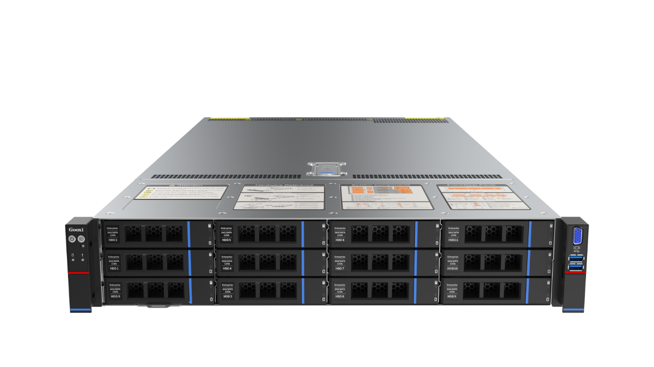 Gooxi AMD Genoa 双路高端服务器是一款存储计算双融合的通用型计算服务器,它采用AMD 第四代处理器平台,支持24个DDR5内存、10个PCIe扩展插槽,整机也是采用模块化设计,多款模块化后窗供选择,快速响应客户需求。兼容两块双宽全长全高高性能GPU,实现灵活配置。多款SAS/SATA/NVMe自适应背板供选择,顺利获得转接卡为客户量身定制扩展需求。风扇、电源和硬盘均采用冗余模式,全面提升系统的可靠性和散热性能,方便后续维护。